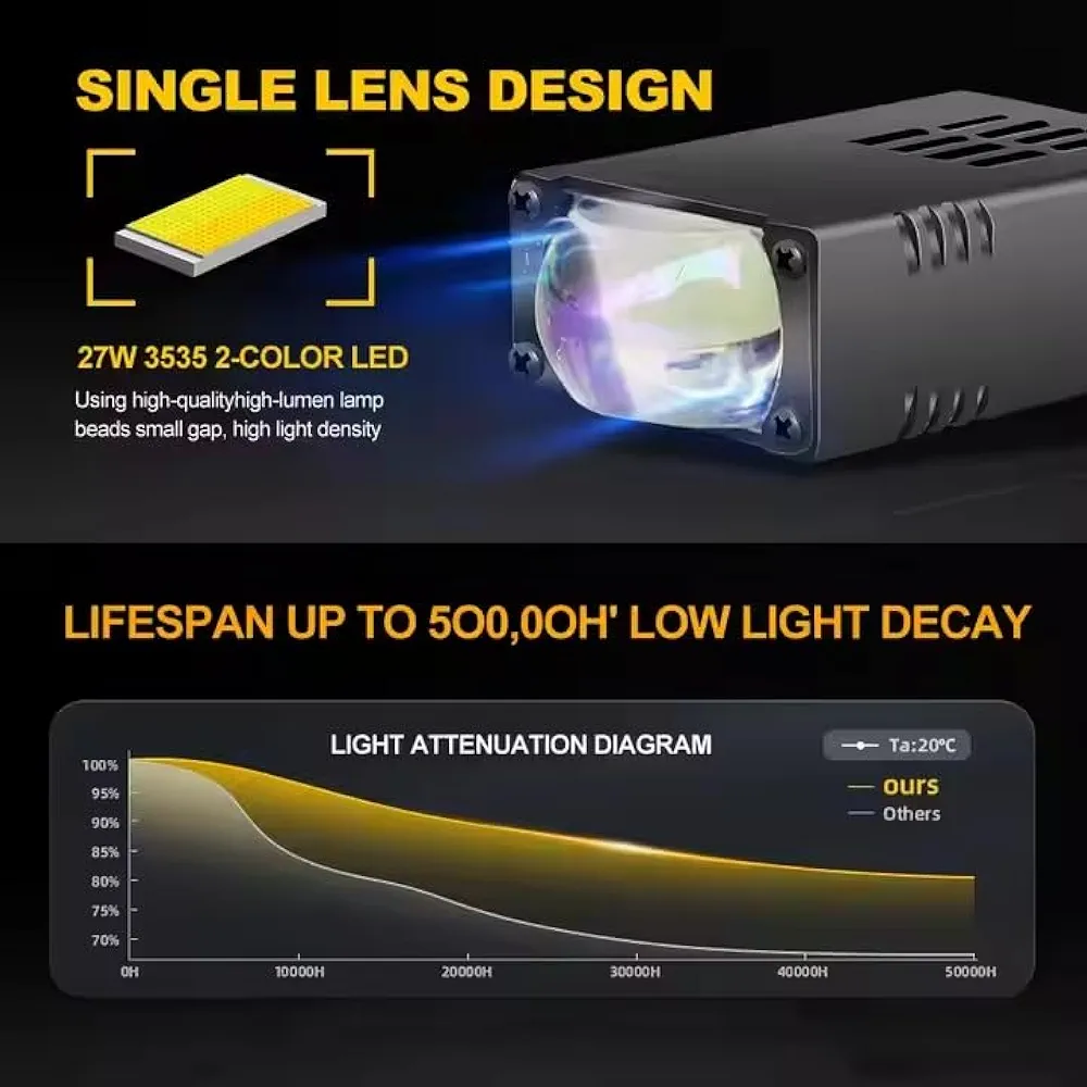 پرژکتور تک لنز مدل K1 چهار حالته فن دار و دیلایت دار اورجینال (۲ عددی)