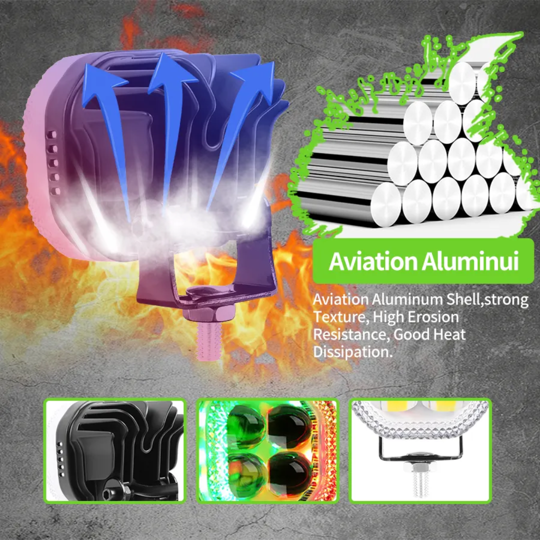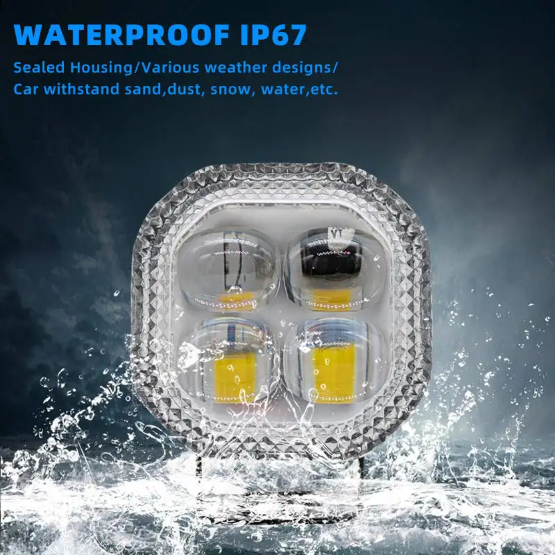پرژکتور مدل چهارلنز 6 حالته دیلایت دار ، دارای دو حالت نوری فوق العاده پر قدرت سفید برای کنتاکت بالا ، زرد یا لیمویی برای کنتاکت پایین همراه با چهار حالت دیلایت رنگی هفت رنگ و فلاشر زن که بوسیله رینگ لایت دور لنزها رقص نور و فلاشر هفت رنگ بسیار جذابی و دورتادور پرژکتور با سیم مجزا به نمایش میزارن ، ۳ سیم ، لنز های پر قدرت با برد نور فوق العاده ، نور شفاف ، خط کات صاف و یکنواخت ، شعاع پخش نور خیلی خوبی و دارا هست و شعاع دید بسیار خوبی و در اختیارتون قرار میده ، بدنه فلزی یا آلومینیوم صنعتی با کیفیت بالا و استحکام زیاد ، مصرف برق پایین ، دارای استاندارد ضد آب IP 67 ، همراه با پایه ، پیچ و مهره و آچار الن جهت نصب خدمت تون ارائه میشه ، قابل نصب برای برق با ولتاژ ۶ تا ۸۵ ولت هست و مناسب برای تمام وسایل نقلیه جاده ایی و خارج جاده ایی ، ماشین های سبک و سنگین ، ماشینهای سواری ، موتور سیکلت ها و ماشین های آفرودی . ( سایر مدلها.....)