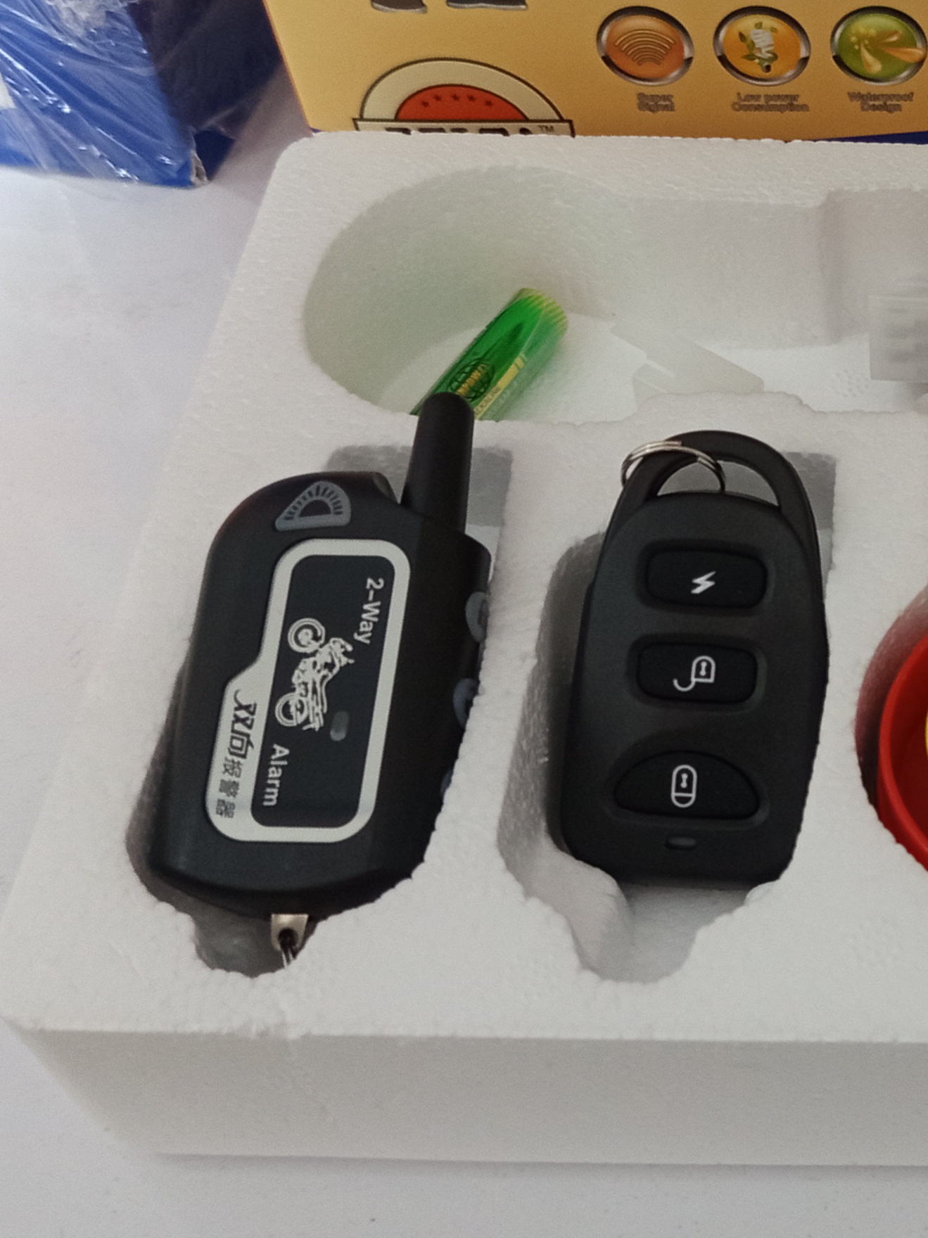 آلارم هشدار دو طرفه ، ریموت کنترل ویبره دار ، آلارم دار و مکان یاب دار ، چیپ وارداتی با کیفیت ،استارت از راه دور ، ۲ عدد ریموت کنترل، سیگنال قوی ، مصرف برق پایین ،بلندگوی فوق العاده پر قدرت چند آلارمه ، کیفیت ساخت کلاس A،ضد آب