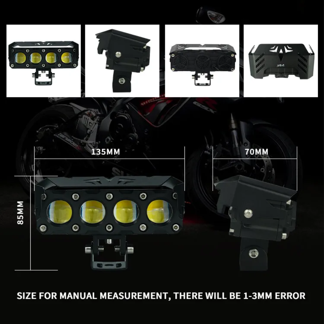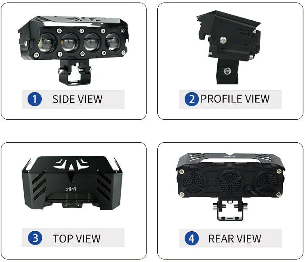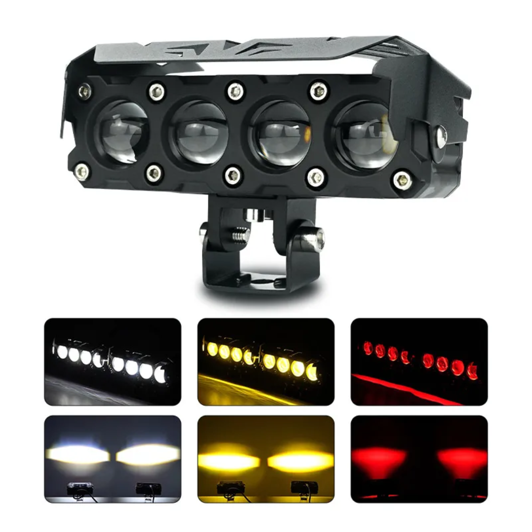 سوپر پرژکتور 4 لنز فن دار، نقاب دار فول پاور برند LIUHJG با 58W قدرت خروجی نور برای هر کدام از لنزها در حالت نور بالای کامل به همراه رله تقویت و تنظیم برق جداگانه برای هر کدام از پرژکتورها ، دو حالت نور اصلی ، نور سفید تکی برای نور بالا، نور زرد تکی برای نور پایین ، فلاشر سه حالته زرد ، سفید و دو رنگ سفید و زرد همراه با دیلایت قرمز داخلی با سیم های مجزا ، 5 سیم ، لنزهای اوپتیکال با کیفیت ، دیلایت دار ، فلاشردار و اورجینال ،بدنه دو جداره ساخته شده به صورت یکدست از مواد با آلیاژ بالا و کاملا ضد آب ، بدنه آلومینیوم هوانوردی با قدرت خنک شوندگی بی نظیر همراه با 2 فن داخلی پر قدرت ، دیلایت دار ، حالتهای نوری سفید ، زرد یا لیمویی همراه با دیلایت قرمز و فلاشر ، همراه با کیت کامل نصب از جمله 2 عدد رله تقویتی ، بست ،پایه ، پیچ و مهره و آچار الن همراه در بسته بندی اصلی ، قدرت نور فوق العاده با برد کیلومتری ، شعاع دید بسیار عالی ، دارای نشان اصالت و گواهینامه کیفیت ISO 9001 ، بهترین و با کیفیت ترین متریال در بین پرژکتورهای هم رده خود. سایرمحصولات....