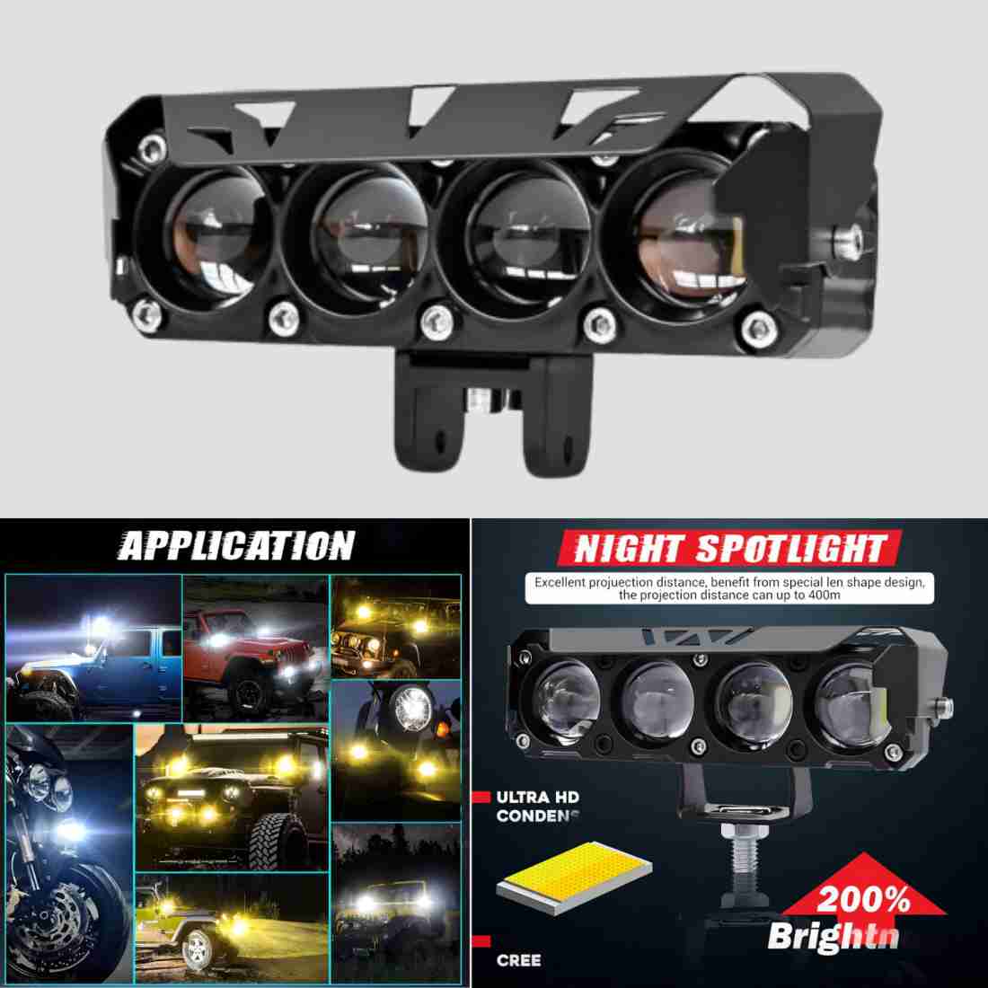 4 لنز ، فن دار ، لنزهای اوپتیکال بسیار پر قدرت ، 50 وات ، پرتاب نور فوق العاده زیاد ، کیفیت ساخت کلاس A اورجینال ،خط کات دار ،2 حالته ، سفید نور بالا و زرد نور پایین، بدنه مستحکم و یکدست کاملا ضد آب