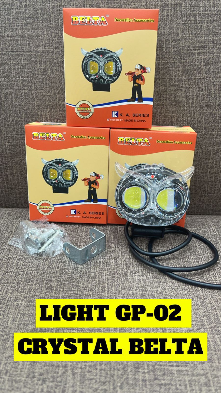 پرژکتور مدل جغدی ، ۲ لنز تلسکوپی ، چهار حالته نور سفید ، لیمویی و نور جفتی همراه با فلاشر سفید و لیمویی در مدلهایی با بدنه ضخیم فلزی ، بدنه نازک فلزی و بدنه کریستال یا شفاف ، ۳ سیم و ۲ سیم ، با کیفیت ساخت و طراحی های بی نظیر، خط کات صاف و یکنواخت ، برد نور ، دامنه پخش و پرتاب نور خیلی زیاد و مصرف برق بسیار پایین همراه با پایه و پیچ مهره قابل استفاده برای برق 12 تا ۸۵ ولت مناسب برای سپر جلو تمامی ماشینهای سبک و سنگین و آفرود و همینطور موتور سیکلت ها . ( سایرمدلها....)